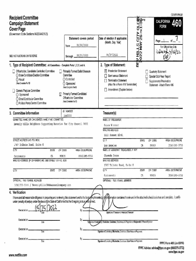 COVER PAGERecipient Committee Campaign Statement Cover PageCALIFORNIA FORM4 60(Government Code Sections 8420084216.5) Statement covers period rrom _ __04/....:24/....:2....:0....:2.;:;2_ __ _DAll