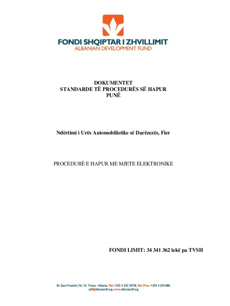 DOKUMENTET STANDARDE T PROCEDURS S HAPUR PUNNdrtimi i Urs Automobilistike s Darzezs, FierPROCEDUR E HAPUR ME MJETE ELEKTRONIKEFONDI LIMIT: 34 341 362 lek pa TVSHI. NJOFTIMI I KONTRATS Seksioni 1 Autoriteti