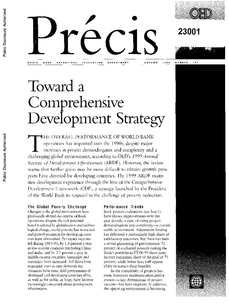 Public Disclosure Authorized23001Public Disclosure AuthorizedPublic Disclosure AuthorizedPublic Disclosure AuthorizedW O RL DBANKOPERATIONSEV A L U A T I O NDEPARTMENTAUTUMN1 S9 919 7NUMBEERComnprehensive