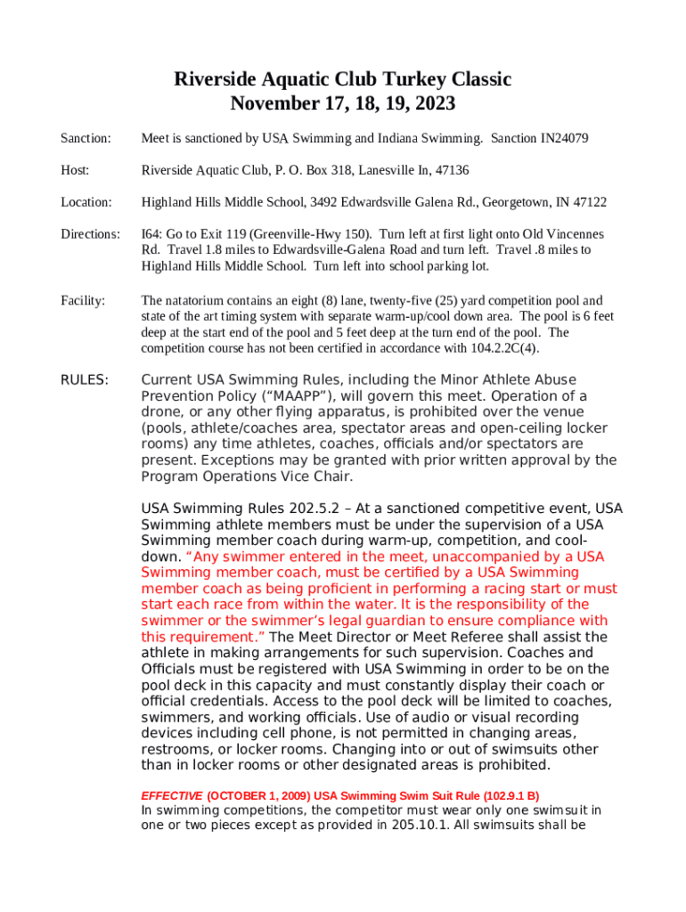 Instructions for the form Riverside Aquatic Club Turkey Classic November 17, 18, 19 ...