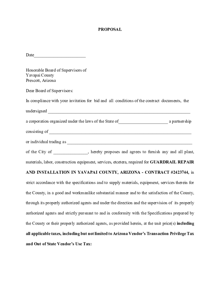 PROPOSALDate___ Honorable Board of Supervisors of Yavapai County Prescott, Arizona Dear Board of Supervisors: In compliance with your invitation for bid and all conditions of the contract documents,