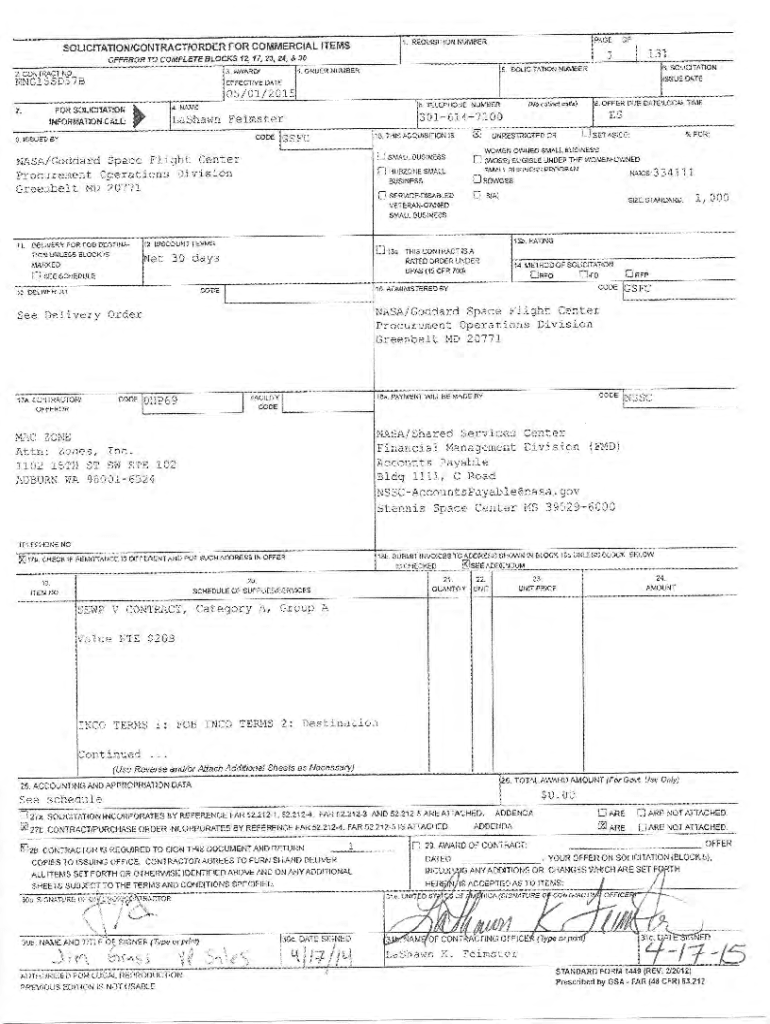 SEWP V Contract No. NNG15SD57BContents I. CONTRACT TERMS AND CONDITIONSCOMMERCIAL ITEMS (52.2124) (DEC 2014) ...........................6 A.1.1. DELIVERABLE REQUIREMENTS (GSFC 52.21190) (OCT 1988)