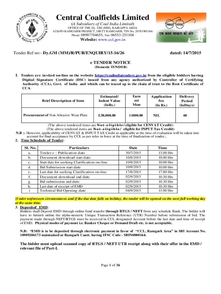 Get the free e tender No. 26 dt. 14.7.15 Non-abrasive wear plate..docx