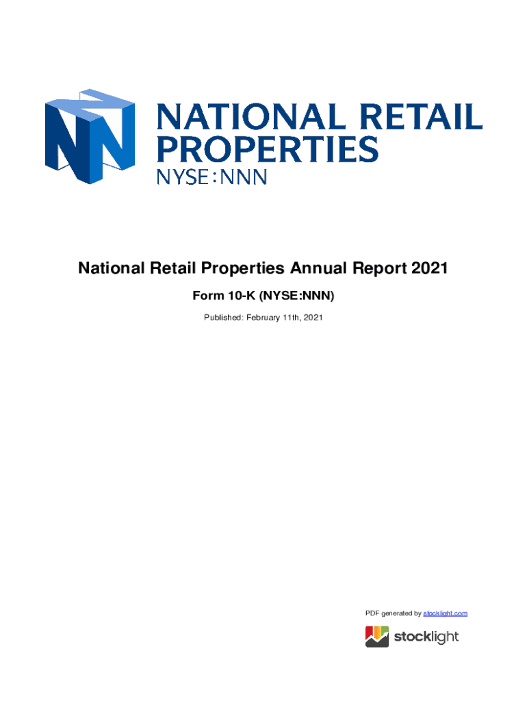National Retail Properties Annual Report 2021 Form 10K (NYSE:NNN) Published: February 11th, 2021PDF generated by stocklight.comUNITED STATES SECURITIES AND EXCHANGE COMMISSION Washington, D. C. 20549FORM