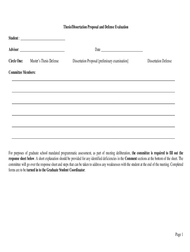 Thesis/Dissertation Proposal and Defense Evaluation Student : ___ Advisor: ___ Circle One:Masters Thesis DefenseDate ___ Dissertation Proposal [preliminary examination]Dissertation DefenseCommittee