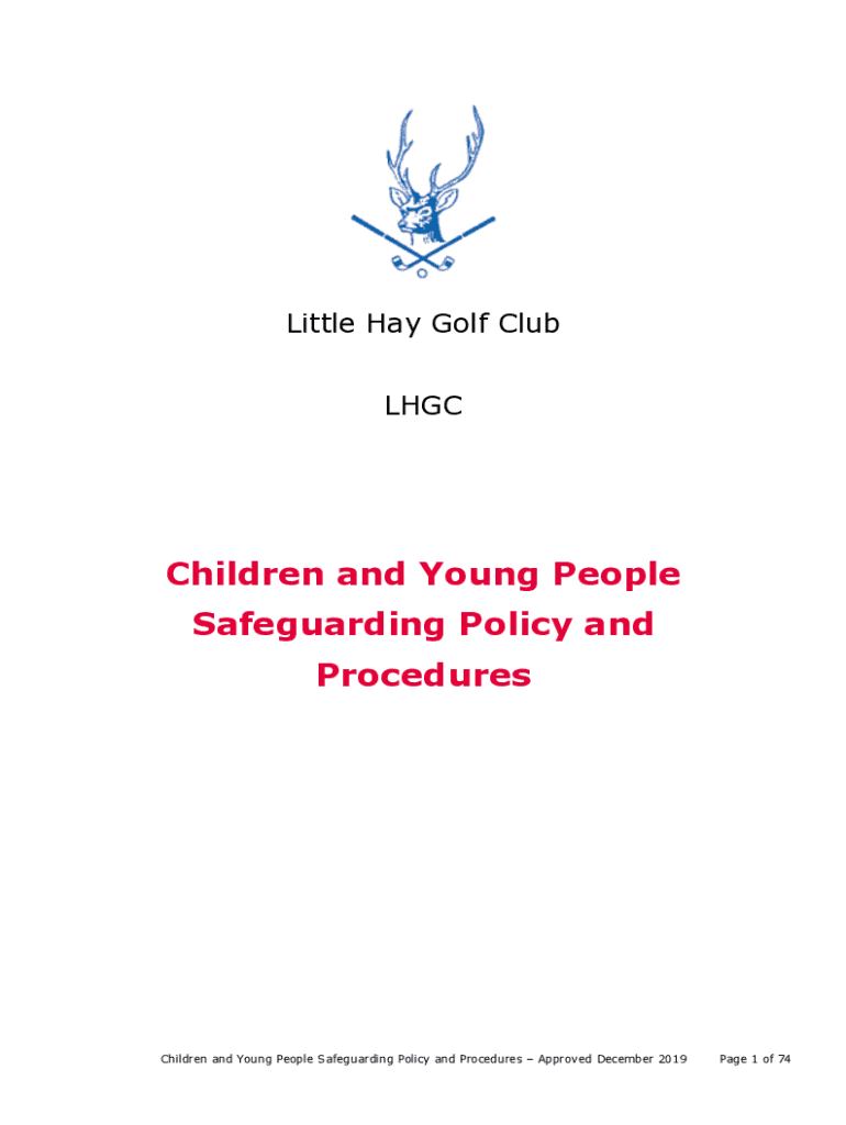 Little Hay Golf Club LHGCChildren and Young People Safeguarding Policy and ProceduresChildren and Young People Safeguarding Policy and Procedures Approved December 2019Page 1 of 74Contents Safeguarding