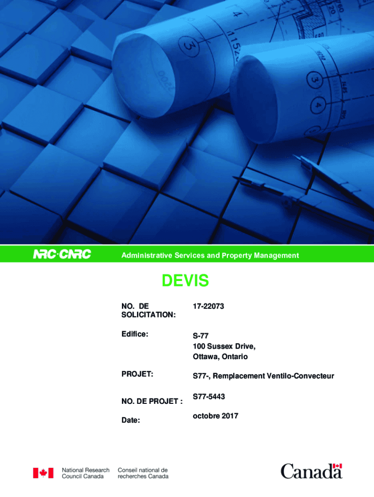 Administrative Services and Property ManagementDEVIS NO. DE SOLICITATION:1722073Edifice:S77 100 Sussex Drive, Ottawa, OntarioPROJET:S77, Remplacement VentiloConvecteurNO. DE PROJET : Date:S775443