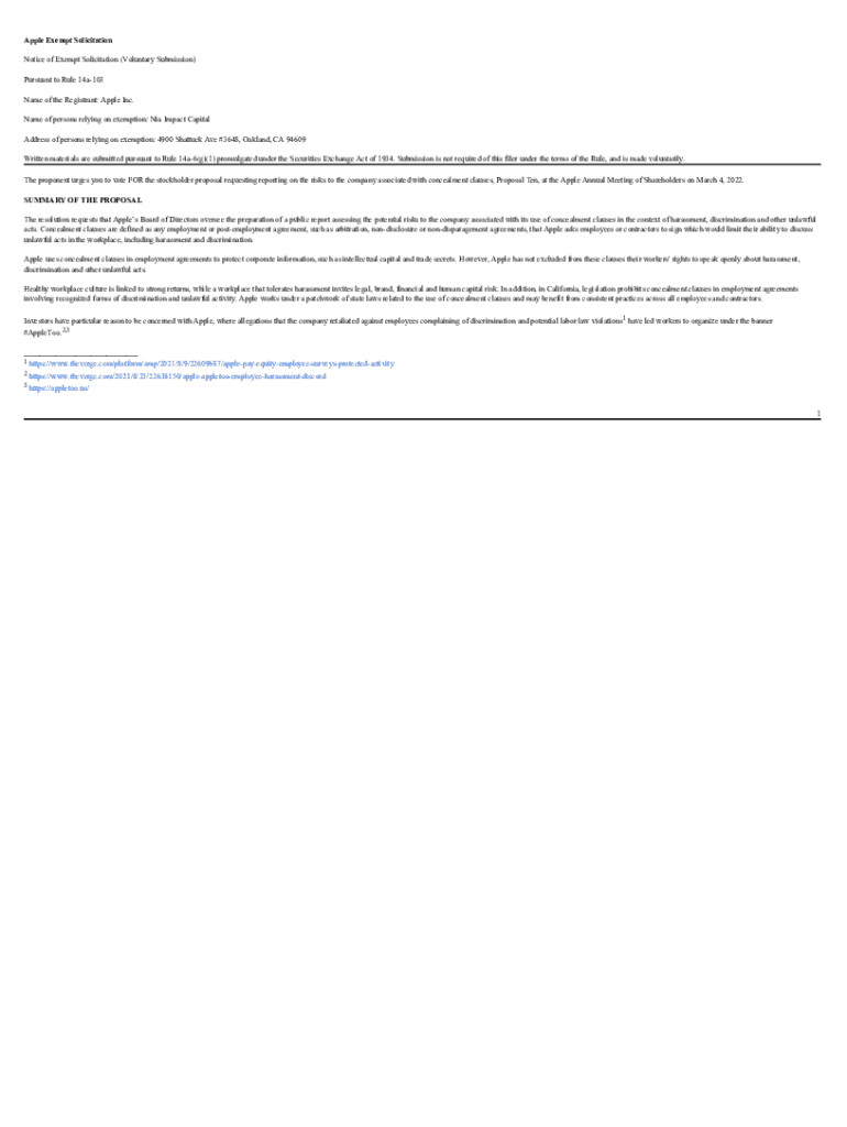 Get the free Notice of Exempt Solicitation Apple Inc. (AAPL) Shareholder ...