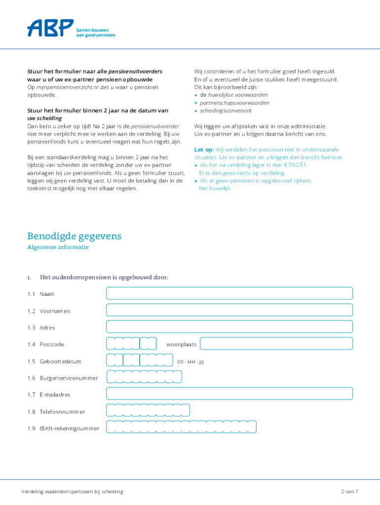 Mededelingsformulier in verband met verdeling van ouderdomspensioen bij scheiding Bij een scheiding komt er veel op u af. U moet veel dingen regelen. Op de website van Rijksoverheid onder het onderwerp