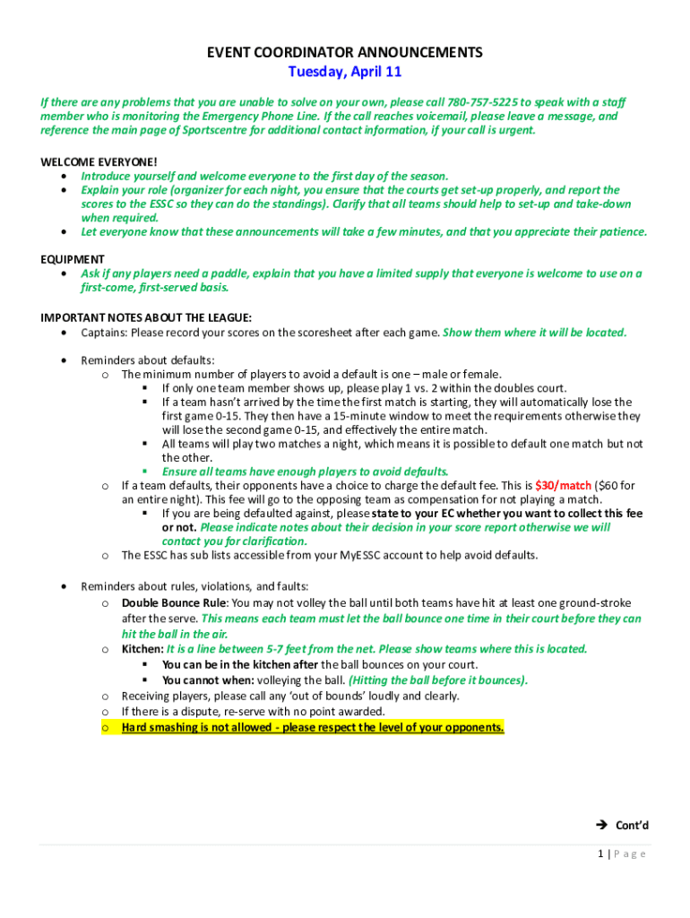 EVENT COORDINATOR ANNOUNCEMENTS Tuesday, April 11 If there are any problems that you are unable to solve on your own, please call 7807575225 to speak with a staff member who is monitoring the Emergency