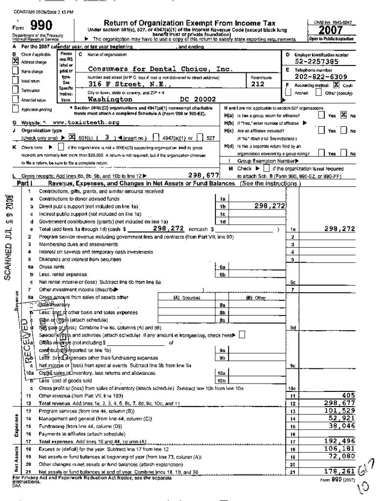CONS7385 06/26/2008 3 13 PM`Return of Organization Exempt From Income Tax990FormOMB No 15450047Under section 501(c), 527, or 4947 (a)(1) of the Internal Revenue Code ( except black lung benefit trust