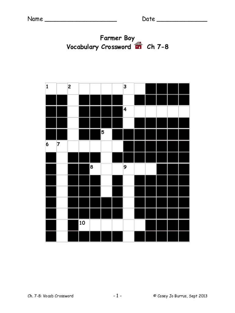 Print Use your Browser Back to Return to Previous PageName ___Date ___Farmer Boy Vocabulary Crossword12Ch 78345 678910Ch. 78: Vocab Crossword1 Casey Jo Burrus, Sept 2013Name ___Date ___Farmer Boy