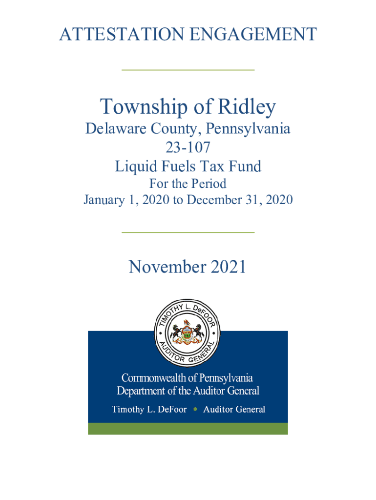ATTESTATION ENGAGEMENT___Township of RidleyDelaware County, Pennsylvania 23107 Liquid Fuels Tax FundFor the Period January 1, 2020 to December 31, 2020___ November 2021Independent Auditors Report