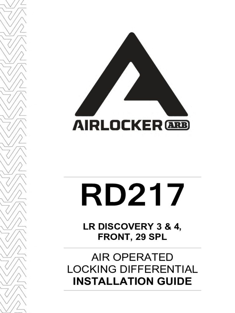 RD217 LR DISCOVERY 3 & 4, FRONT, 29 SPLAIR OPERATED LOCKING DIFFERENTIAL INSTALLATION GUIDENo liability is assumed for damages resulting in the use of the information contained herein. ARB AIR LOCKER