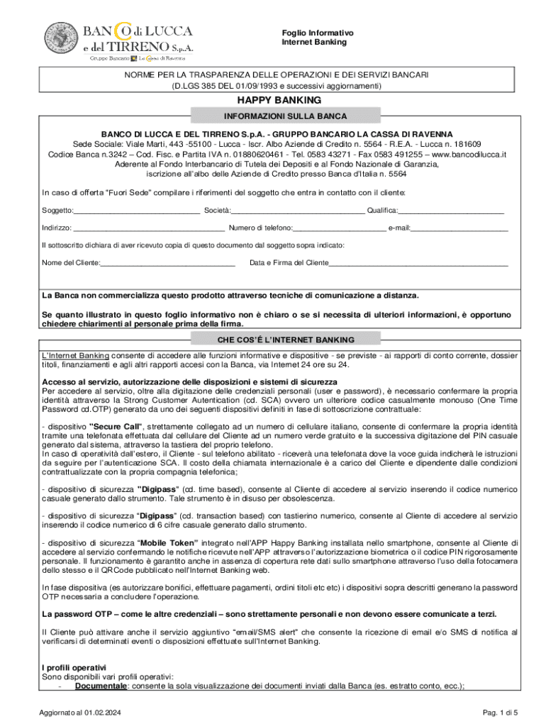 Foglio Informativo Internet BankingNORME PER LA TRASPARENZA DELLE OPERAZIONI E DEI SERVIZI BANCARI (D.LGS 385 DEL 01/09/1993 e successivi aggiornamenti)HAPPY BANKING INFORMAZIONI SULLA BANCA BANCO