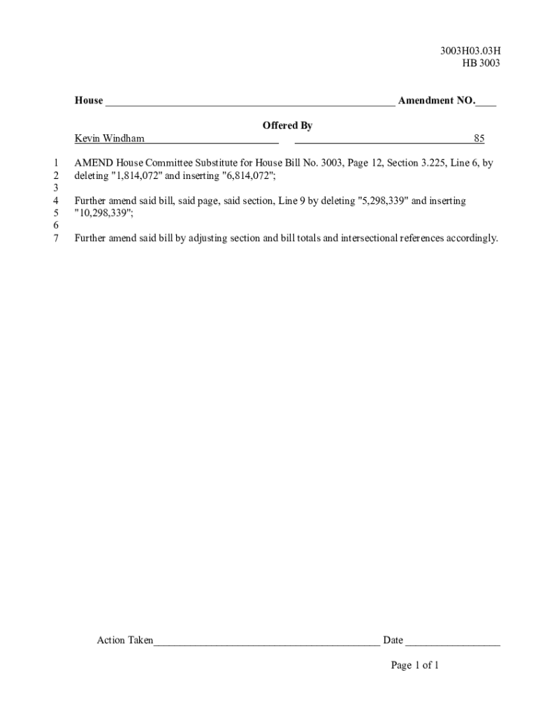 3003H03.03H HB 3003 House ___ Amendment NO.___ Offered By Kevin Windham 1 2 3 4 5 6 785AMEND House Committee Substitute for House Bill No. 3003, Page 12, Section 3.225, Line 6, by deleting \"1,814,072\"
