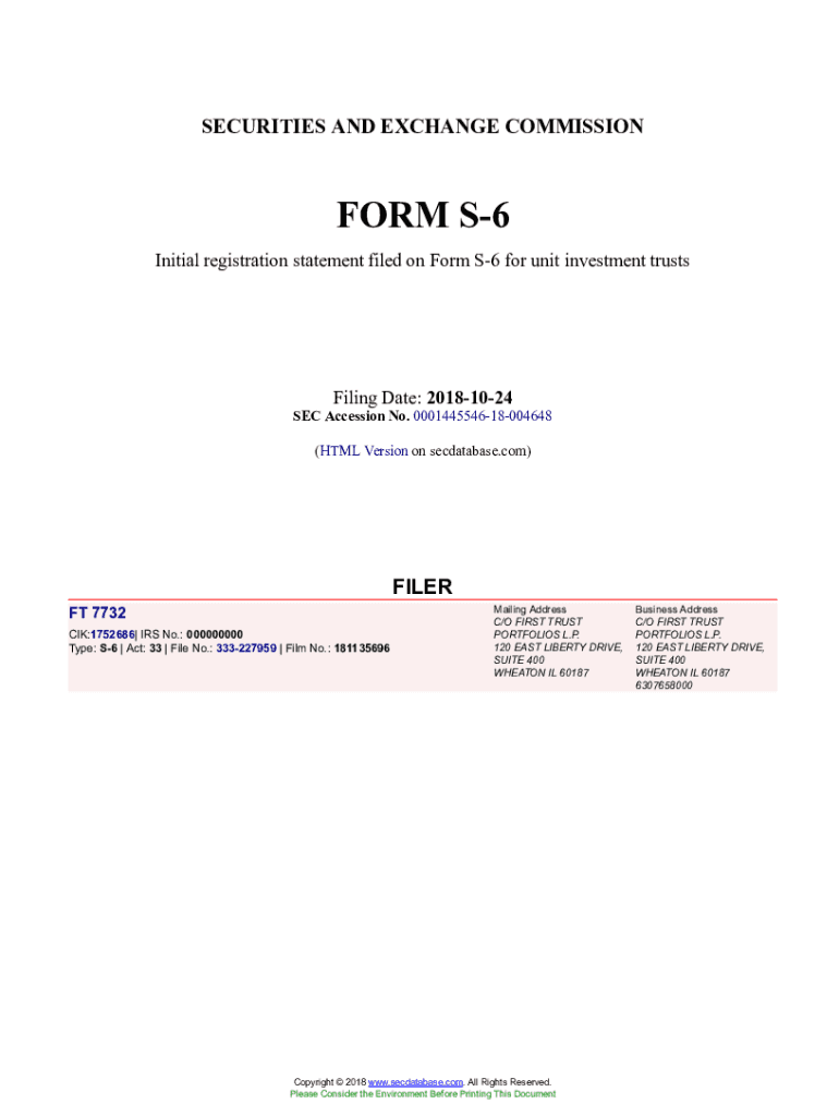 Get the free FT 7732 Form S-6 Filed 2018-10-24. Accession Number