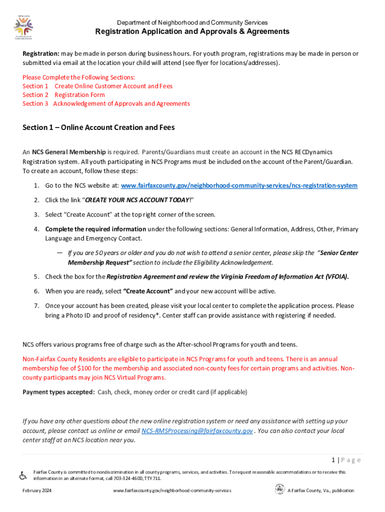 Department of Neighborhood and Community ServicesRegistration Application and Approvals & Agreements