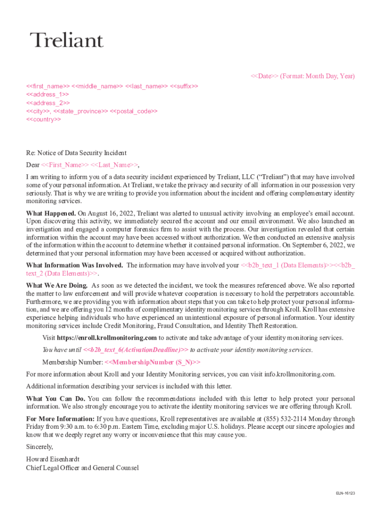 Get the free Subject: Notice of Data Security Incident