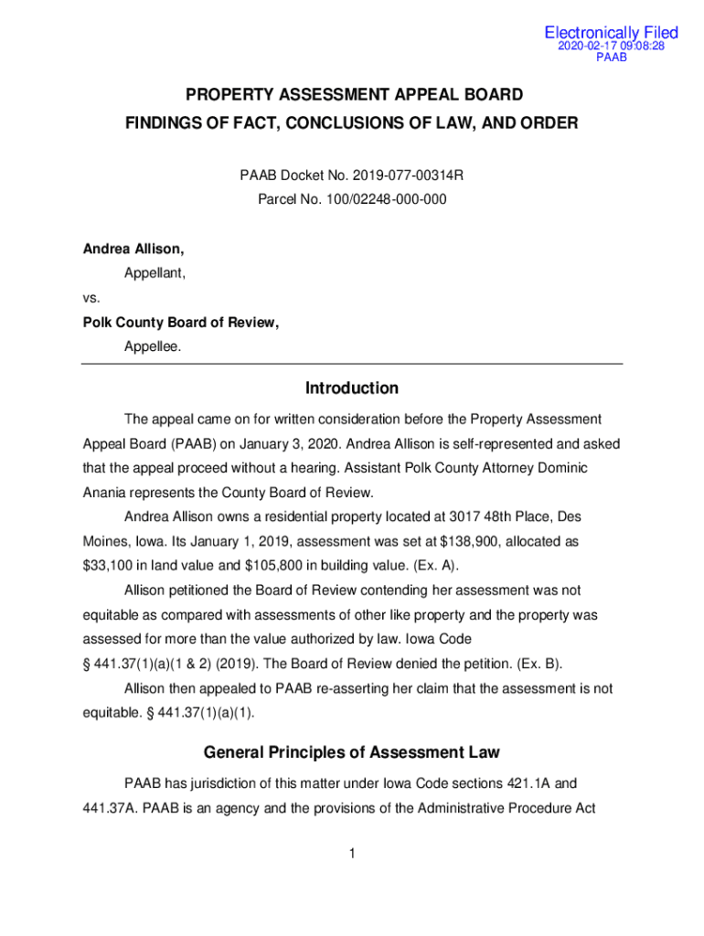 Get the free Property Assessment Appeal Board Filing Fee PURPOSE - paab iowa