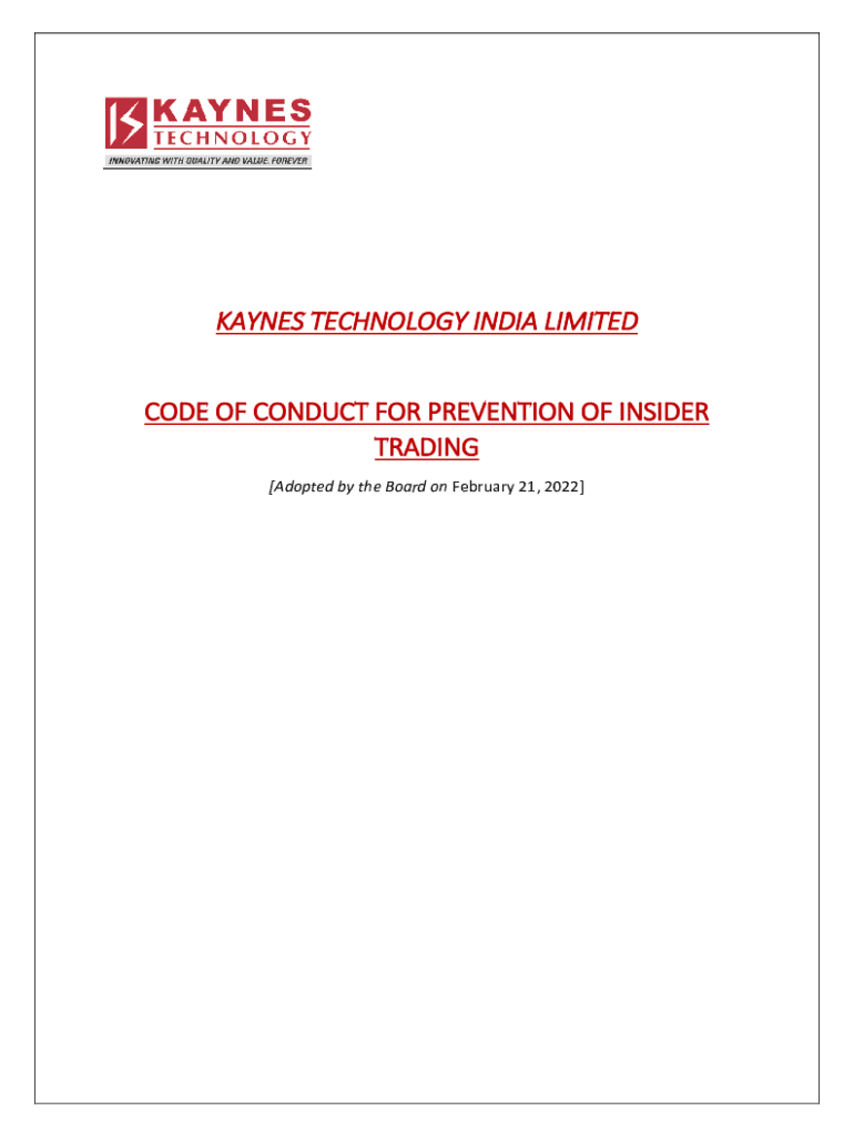 KAYNES TECHNOLOGY INDIA LIMITED CODE OF CONDUCT FOR PREVENTION OF INSIDER TRADING [Adopted by the Board on February 21, 2022]1. Introduction Regulation 9 of the SEBI (Prohibition of Insider Trading)