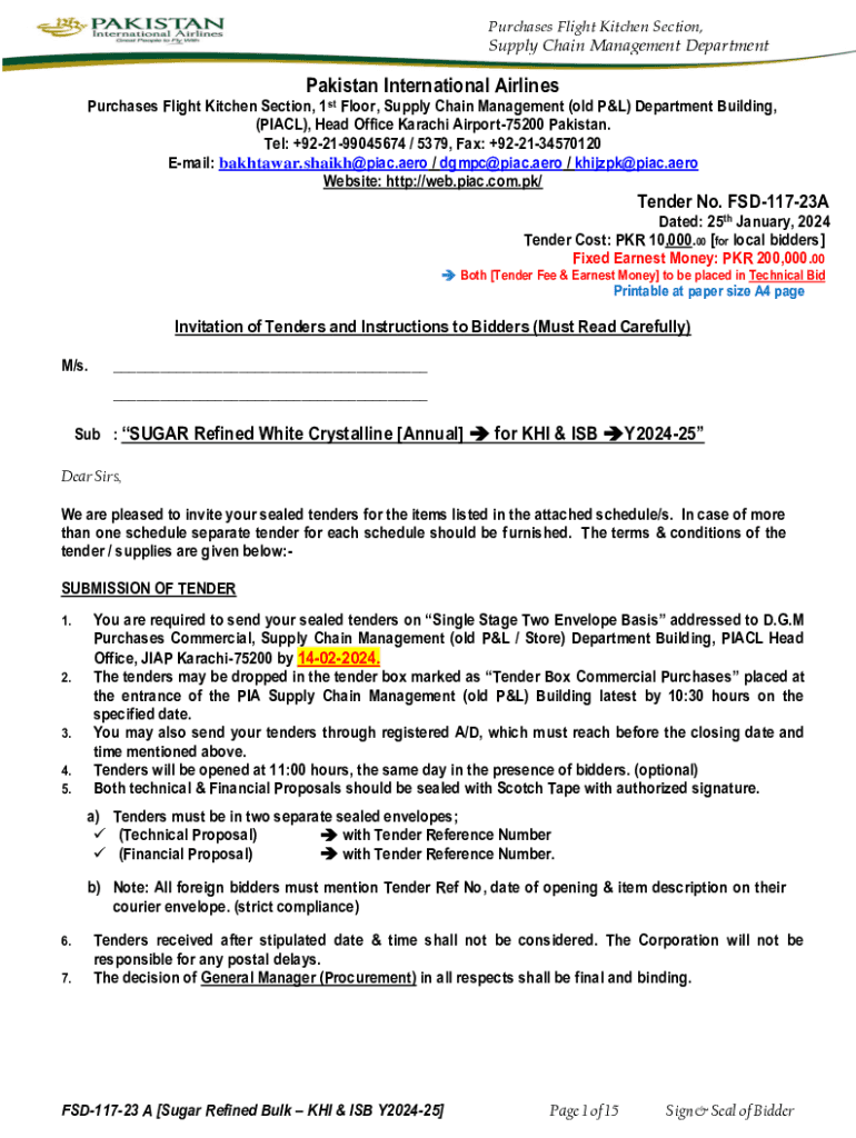 Purchases Flight Kitchen Section,Supply Chain Management DepartmentPakistan International AirlinesPurchases Flight Kitchen Section, 1st Floor, Supply Chain Management (old P&L) Department Building,