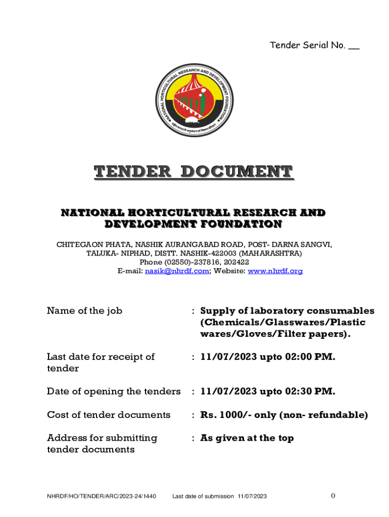 Tender Serial No. __TENDER DOCUMENT N NA AT TIIO ON NA AL LH HO OR RT TIIC CU UL LT TU UR RA AL LR RE ESSE EA AR RC CH HA AN ND D D DE EV VE EL LO OP PM ME EN NT TF FO OU UN ND DA AT TIIO ON N CHITEGAON