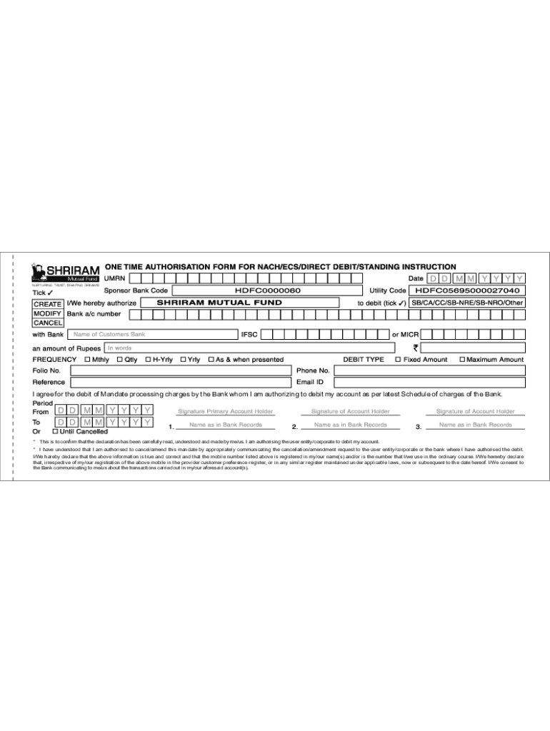 Mutual Fund NURTURING TRUST, SHAPING DREAMSI agree for the debit of Mandate processing charges by the Bank whom I am authorizing to debit my account as per latest Schedule of charges of the Bank.*