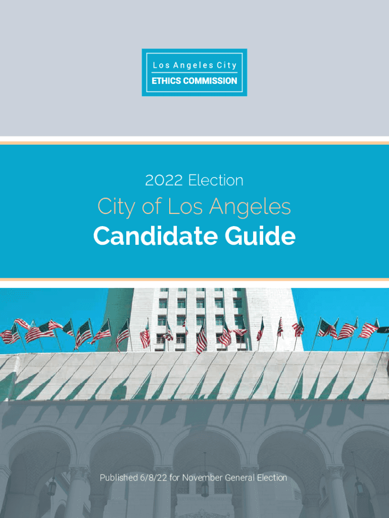 2022 ElectionCity of Los AngelesCandidate GuidePublished 6/8/22 for November General ElectionIntroduction In 1985, Los Angeles City voters enacted limits on contributions to City campaigns, the first