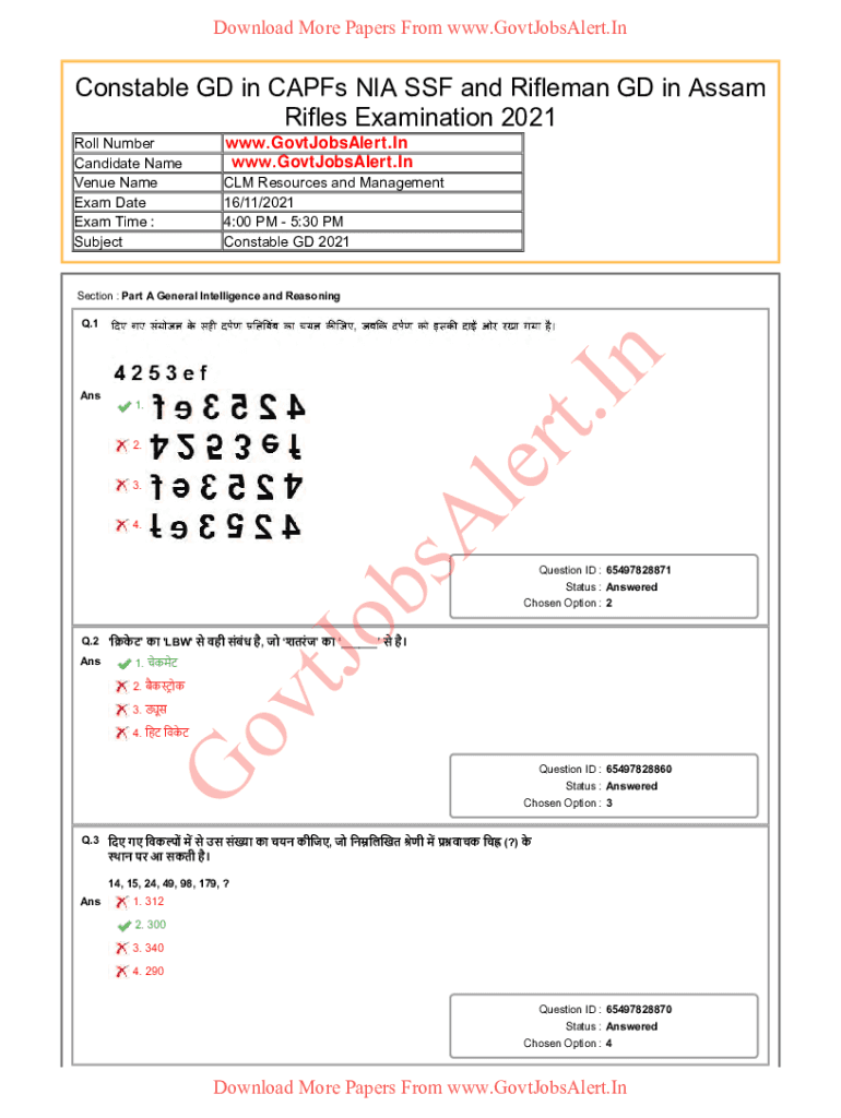Download More Papers From www.GovtJobsAlert.InConstable GD in CAPFs NIA SSF and Rifleman GD in Assam