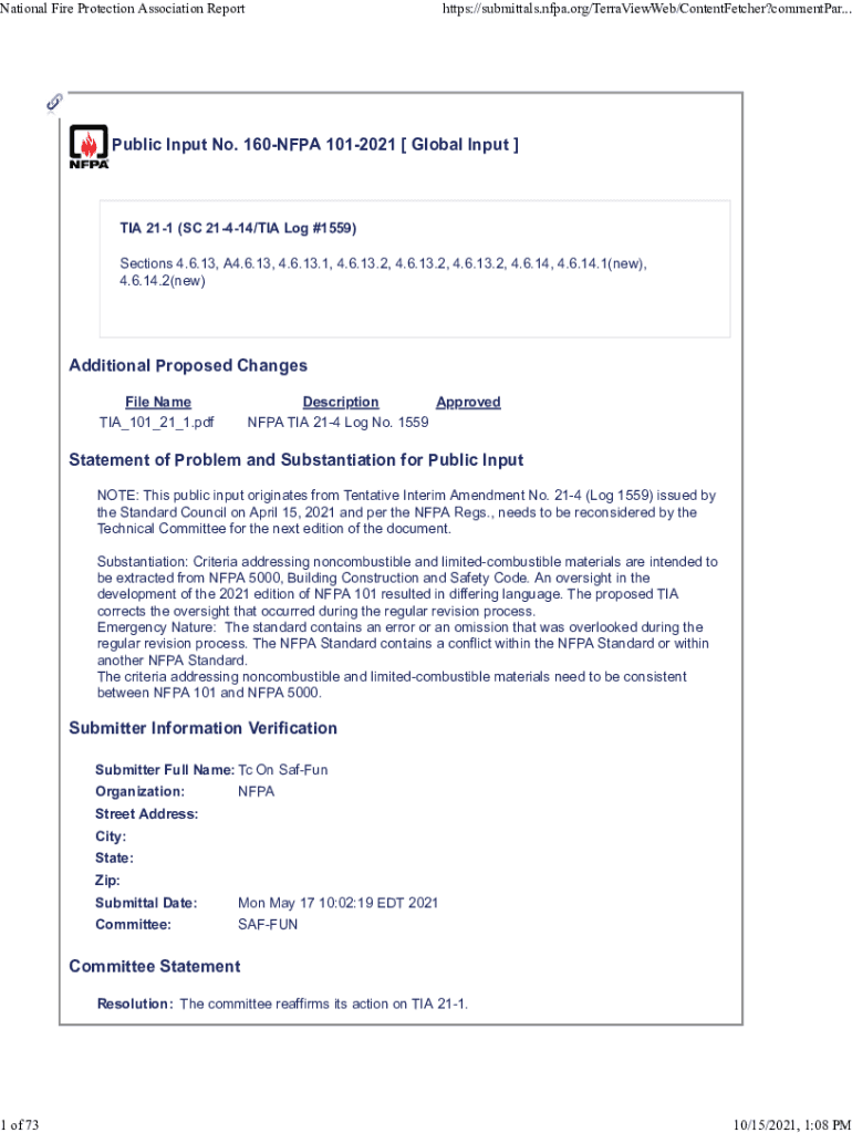National Fire Protection Association Reporthttps://submittals.nfpa.org/TerraViewWeb/ContentFetcher?commentPar...Public Input No. 160NFPA 1012021 [ Global Input ]TIA 211 (SC 21414/TIA Log #1559) Sections