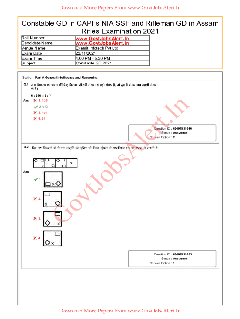 Download More Papers From www.GovtJobsAlert.InConstable GD in CAPFs NIA SSF and Rifleman GD in Assam