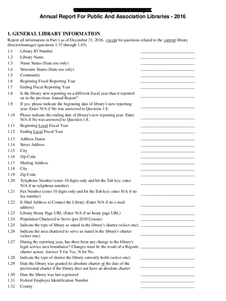 20th Century Club Library Annual Report For Public And Association Libraries 2016 1. GENERAL LIBRARY INFORMATION Report all information in Part 1 as of December 31, 2016, except for questions related
