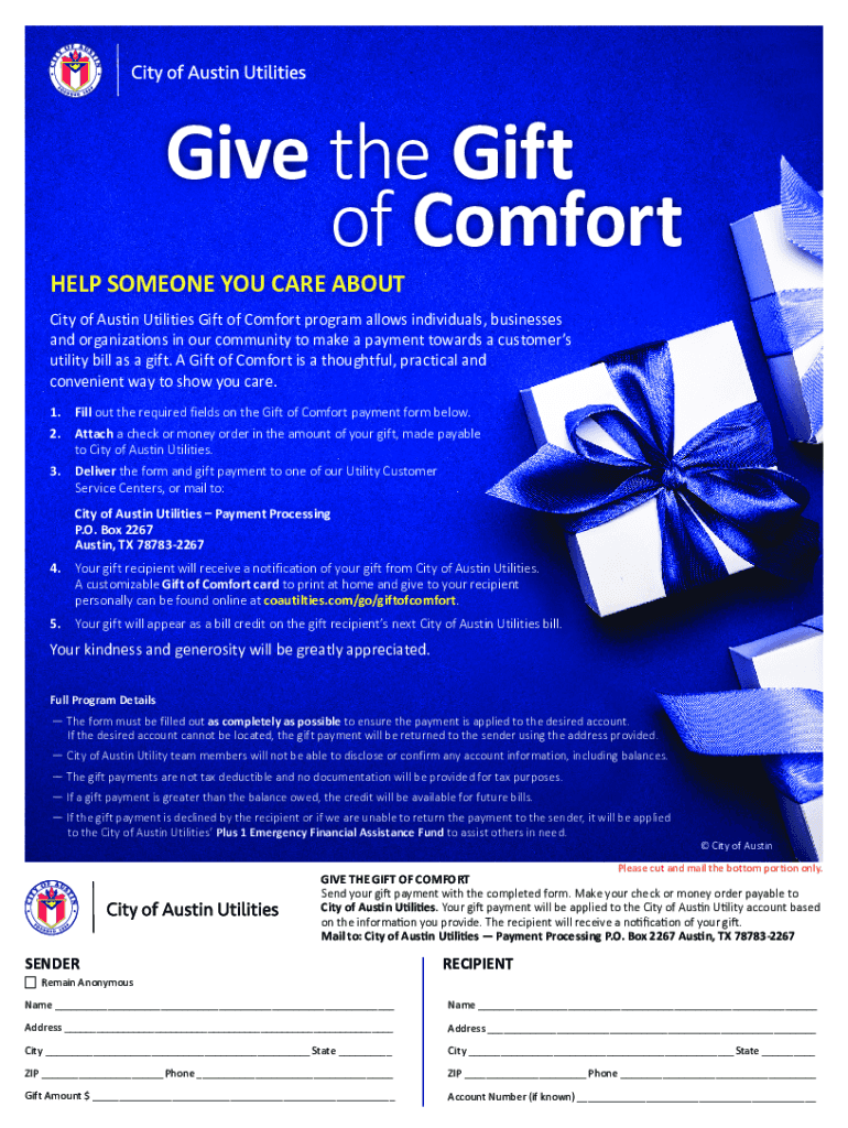 of Comfortable SOMEONE YOU CARE Absurdity of Austin Utilities Gift of Comfort program allows individuals, businesses