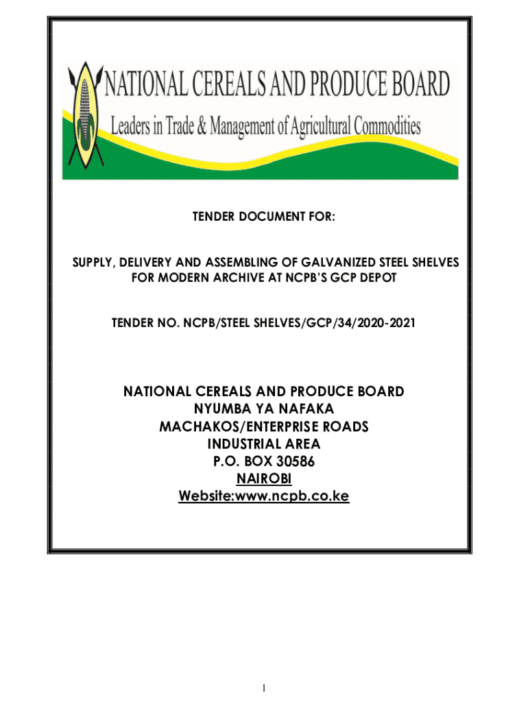 TENDER NO. ENCPB/STEEL SHELVES/GCP/34/20202021NATIONAL CEREALS AND PRODUCE BOARD