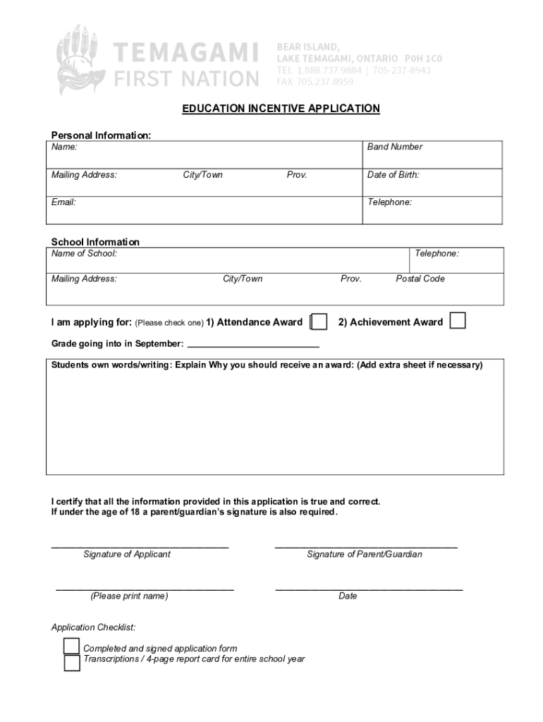EDUCATION INCENTIVE APPLICATION