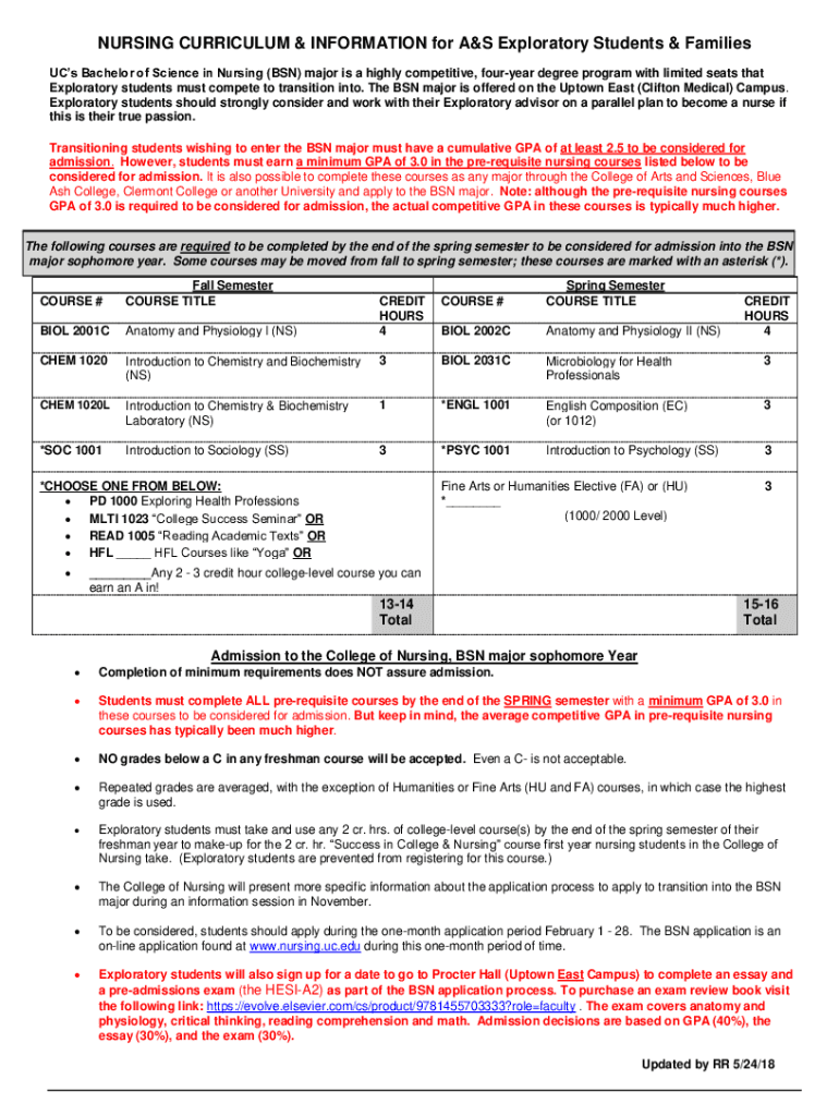 NURSING CURRICULUM & INFORMATION for A&S Exploratory Students & Families UCs Bachelor of Science in Nursing (BSN) major is a highly competitive, fouryear degree program with limited seats that Exploratory