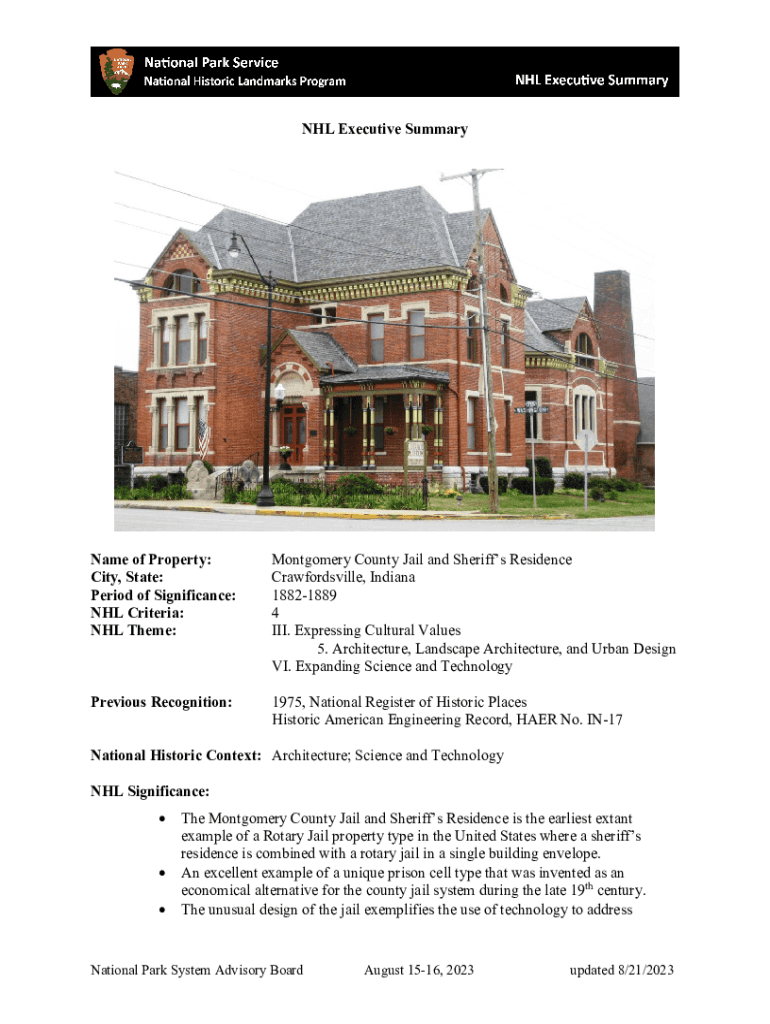 Get the free NHL Executive Summary Form. Montgomery County Jail and Sheriff's Residence