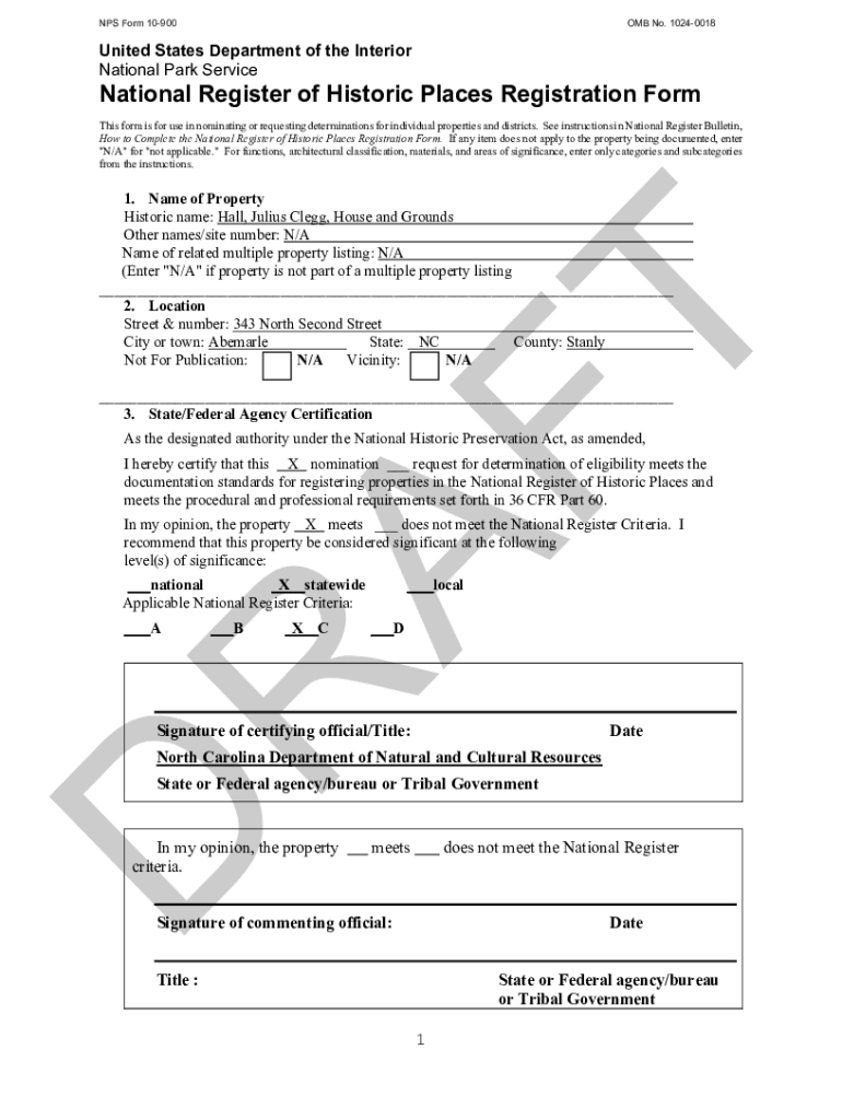 NPS Form 10900OMB No. 10240018United States Department of the Interior National Park ServiceNational Register of Historic Places Registration Form This form is for use in nominating or requesting