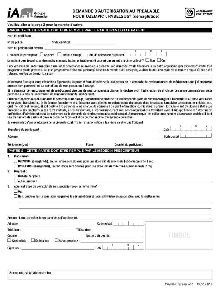 Obtenir le gratuit Humania Prior Authorization - Ozempic (2023-01 v2) FR