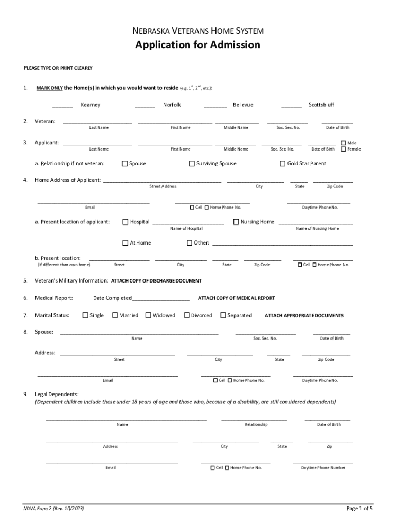 NEBRASKA VETERANS HOME SYSTEMApplication for Admission