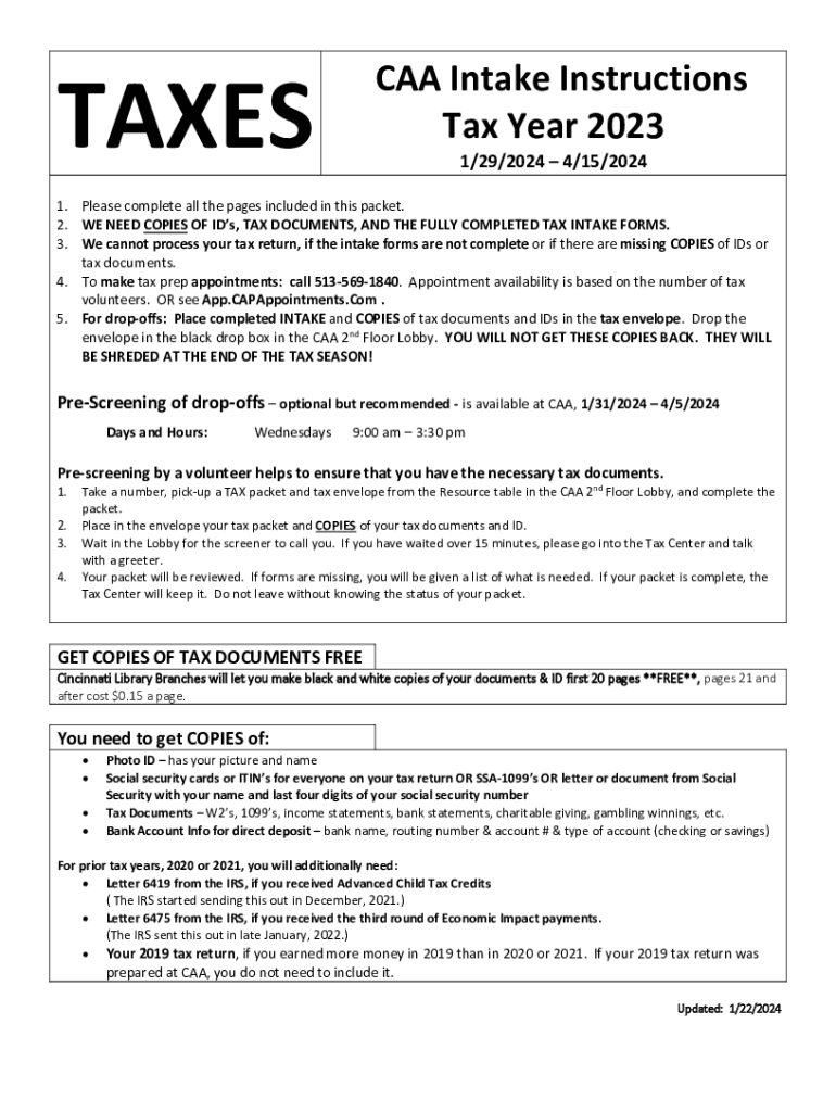 TAXES CAA Intake Instructions
