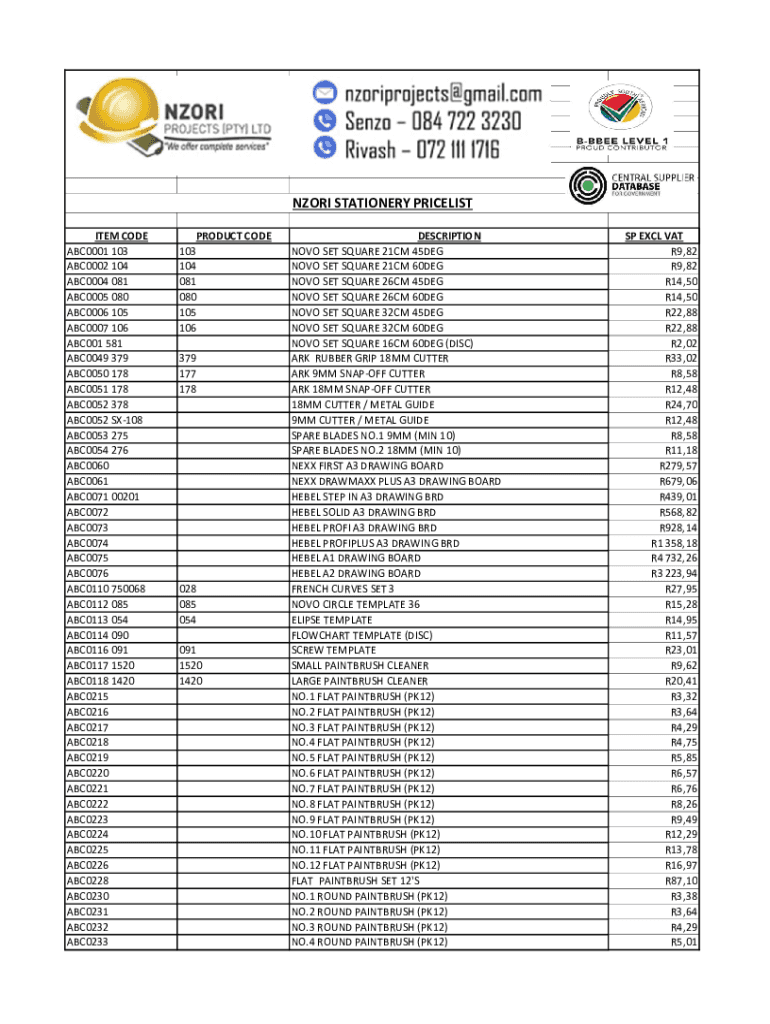 Fill out your nzori stationery pricelist online with pdfFiller!
