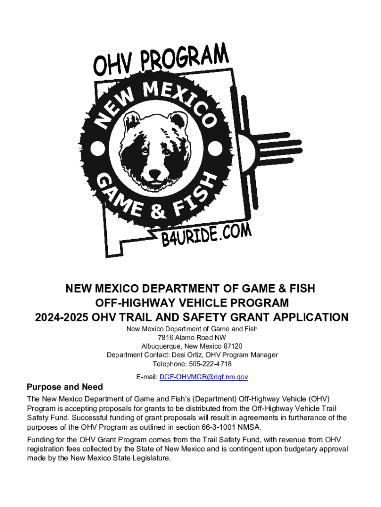 Off-highway vehicle grant applications are forms submitted to request funding or financial assistance for projects related to off-highway vehicle (OHV) use, management, or safety.