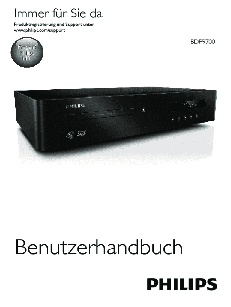 Immer fr Sie da Produktregistrierung und Support unter www.philips.com/supportFragen? Philips hilft.BenutzerhandbuchBDP9700Sicherheit und wichtige Hinweise Lesen Sie alle Anweisungen sorgfltig durch,