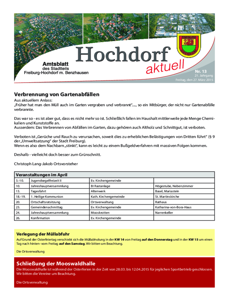 Nr. 13 21. Jahrgang Freitag, den 27. Mrz 2015Verbrennung von Gartenabfllen Aus aktuellem Anlass: Frher hat man den Mll auch im Garten vergraben und verbrannt....., so ein Mitbrger, der nicht nur Gartenabflle