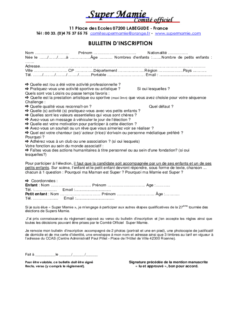 Tl : 00 33. (0)4 75 37 55 75 comitesupermamie@orange.fr www.supermamie.comBULLETIN INSCRIPTION
