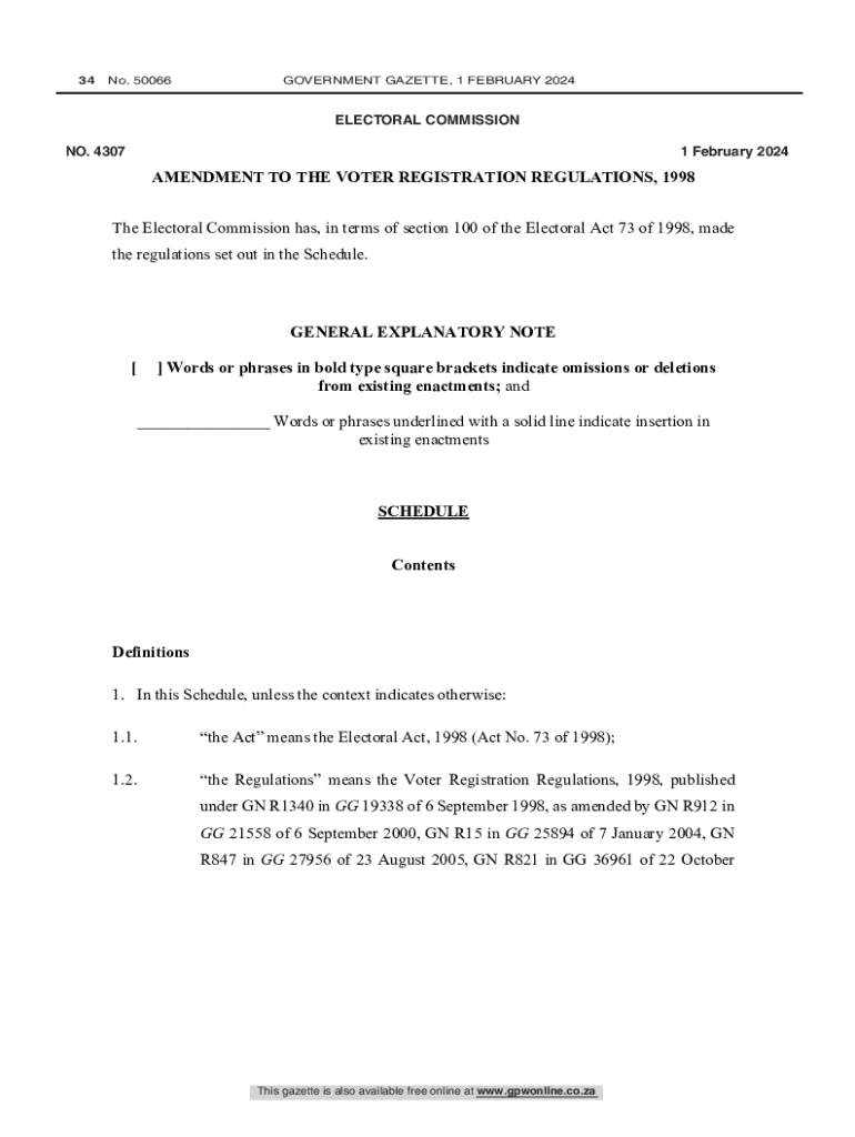 NO. 43071 February 2024AMENDMENT TO THE VOTER REGISTRATION REGULATIONS, 1998