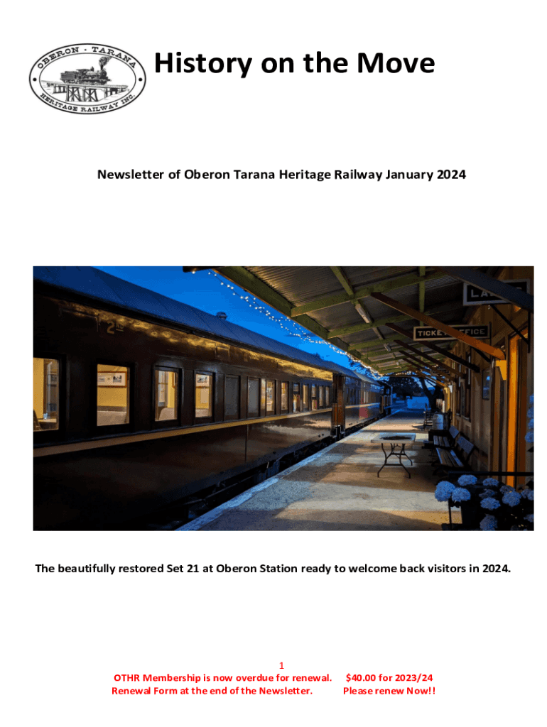 History on the MoveNewsletter of Oberon Tarawa Heritage Railway January 2024The beautifully restored Set 21 at Oberon Station ready to welcome back visitors in 2024.1
