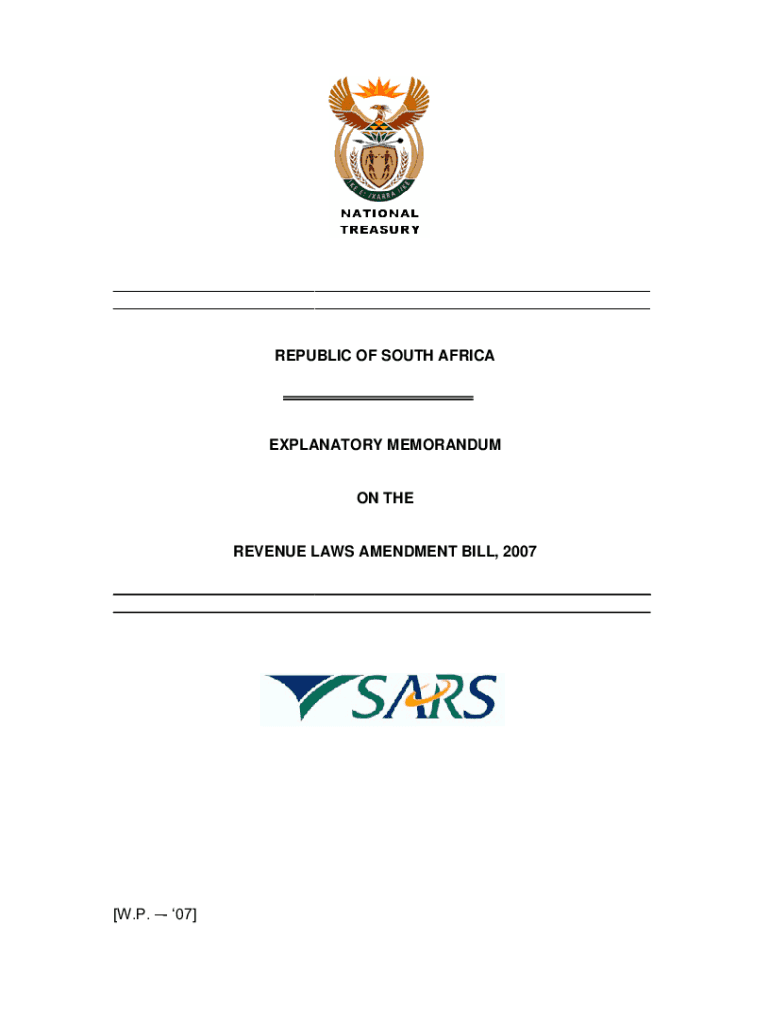___ ___REPUBLIC OF SOUTH AFRICAEXPLANATORY MEMORANDUMON THEREVENUE LAWS AMENDMENT BILL, 2007 ___ ___[W.P. 07]CONTENTS EXPLANATION OF MAIN AMENDMENTS Introduction Adjustments to the base for the Secondary